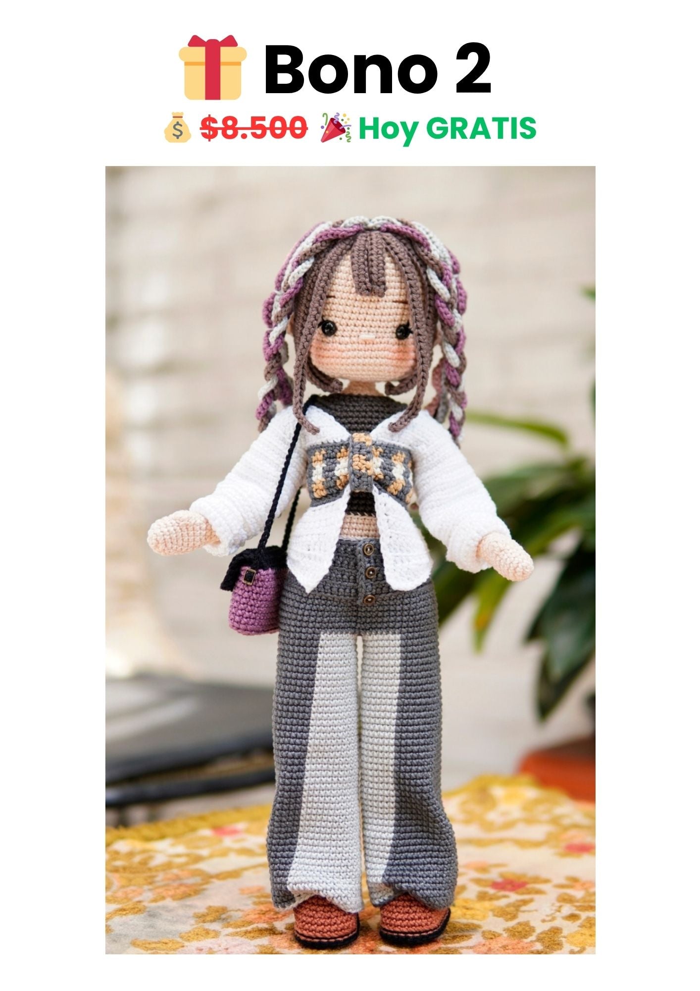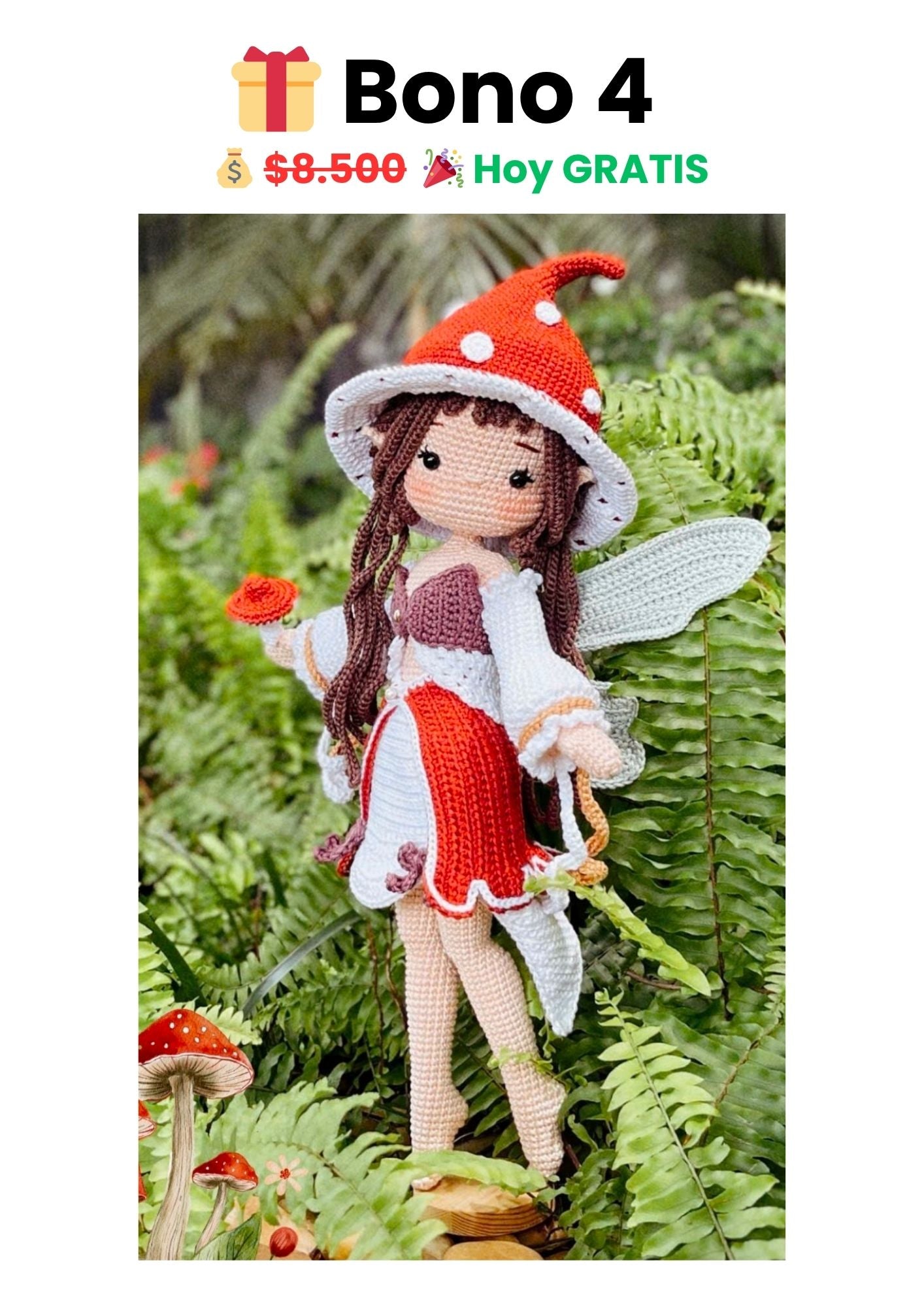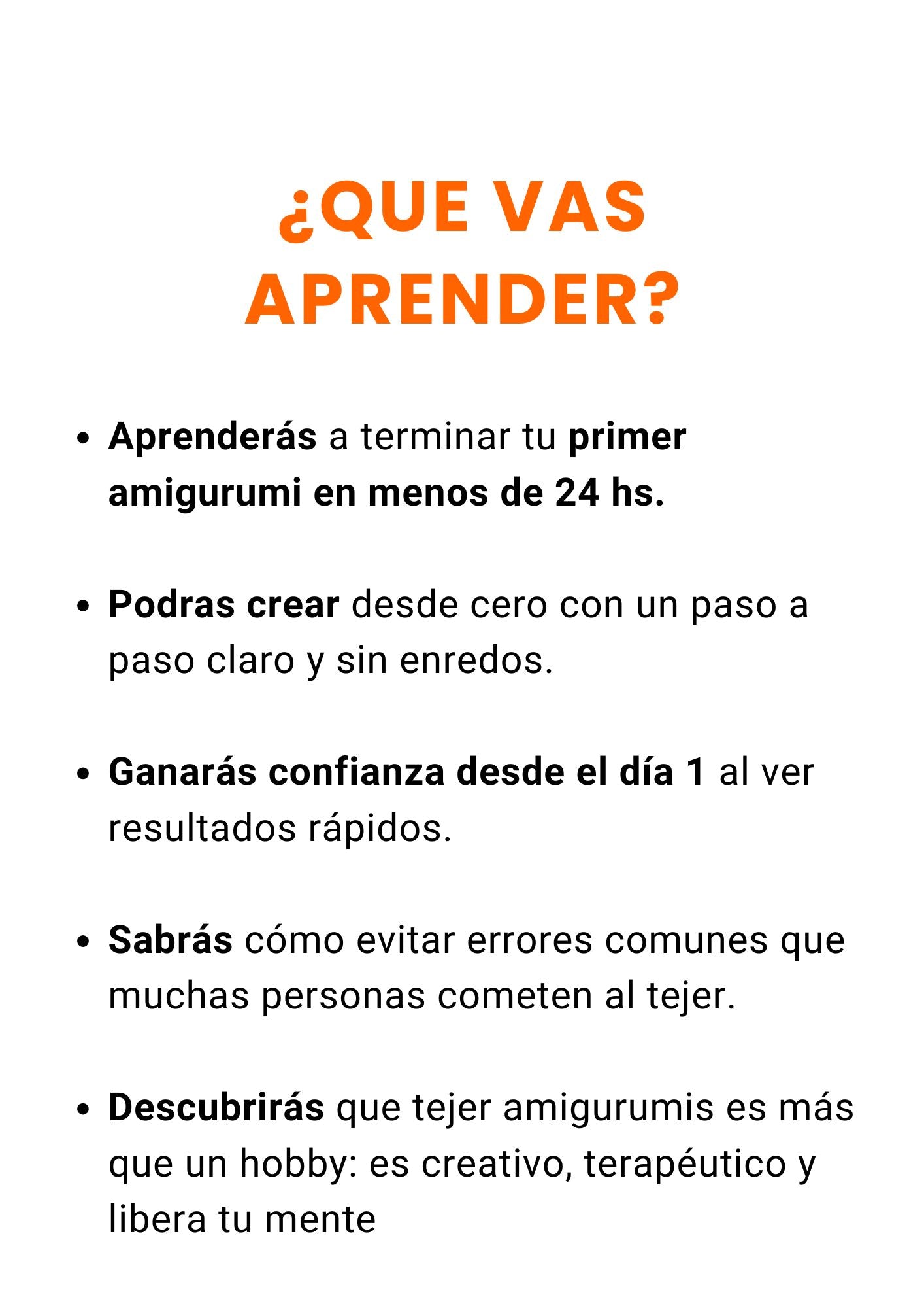 Incluye una guía completa para hacer tu primer amigurumi en 24hs, +7.000 patrones hermosos, y 6 bonos exclusivos para ayudarte a crear, organizarte y empezar a vender.