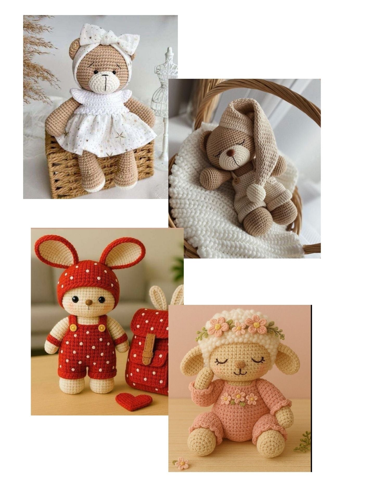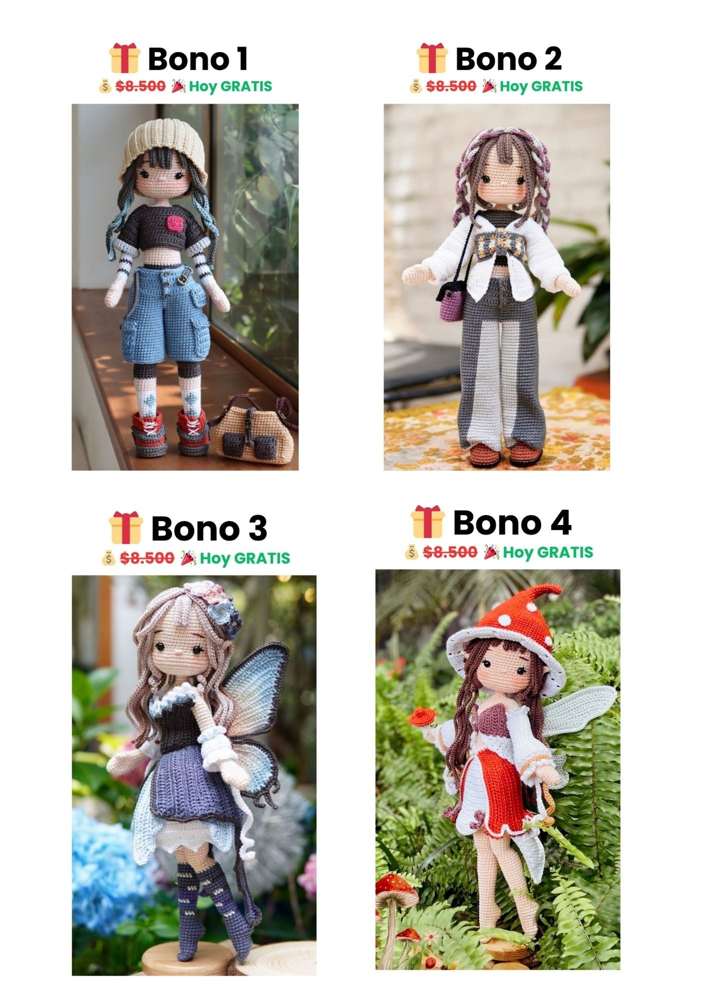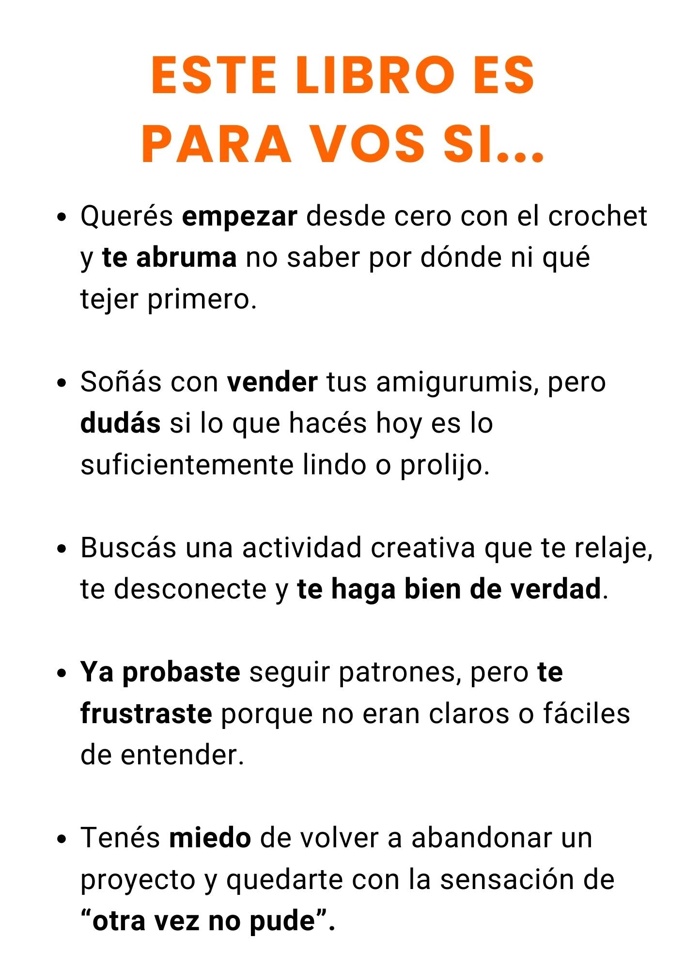 Incluye una guía completa para hacer tu primer amigurumi en 24hs, +7.000 patrones hermosos, y 6 bonos exclusivos para ayudarte a crear, organizarte y empezar a vender.